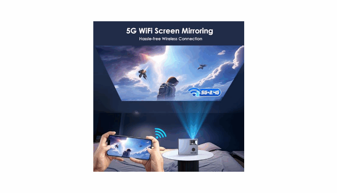 Cellular and WiFi Connectivity : This compact projector adopts the latest cellular network technology, enabling screen mirroring without the need for a WiFi connection. This cutting-edge feature even facilitates wireless connectivity outdoors. Moreover, the home projector is equipped with 2.4+5G dual-band WiFi, enabling seamless and rapid screen mirroring without any frame drops or delays.