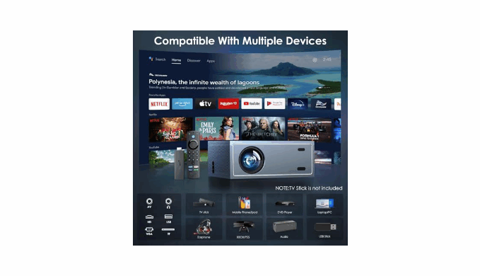 Immersive Audio and Bluetooth 5.1 : Immerse yourself in a mesmerizing audio experience with the built-in high-fidelity 5W speaker of this movie projector, which delivers rich bass and crystal-clear treble. The 5.1 surround sound system further enhances the auditory immersion. Additionally, you can connect your Bluetooth-enabled projector to an external speaker for an enhanced audio journey.
