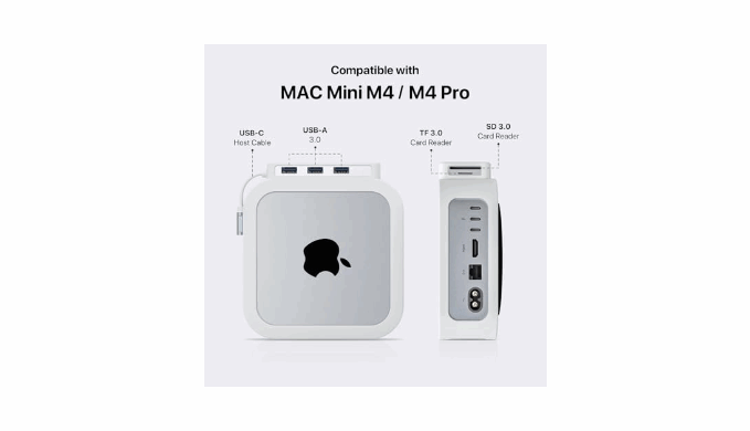 USB-C Hub for Mac Mini M4 / M4 Pro Dock & Stand: The all-in-one USB c dock compatible with Mac Mini M4 / M4 Pro, equipped with a USB hub and a protective silicone case, extremely expand the function and memory for M4