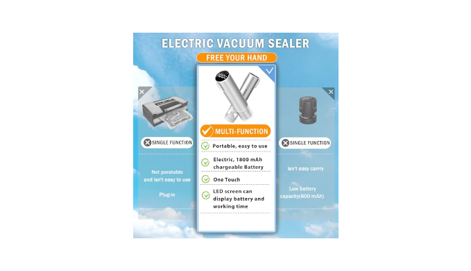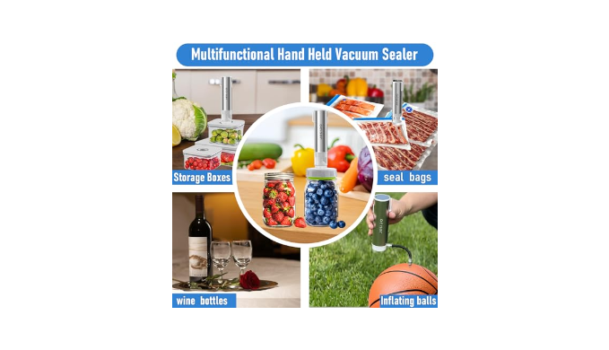 Multi - functional: This handheld vacuum sealer is compatible with Mason jars (both regular mouth and wide mouth), sous vide bags, food storage containers, and wine bottles. It meets various sealing needs and keeps food and wine fresh for longer. It also serves as an air pump for inflating balls and swim rings