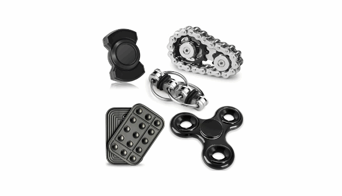 【Fidget Toys Adult Pack】Varied metal fidget toy assortment: This cool gadgets pack has 5 metal fidgets. There\'s a magnetic fidget slider that slides smoothly, a chain toy that wraps around tactilely, a flippy chain that loops infinitely, a 3-in-1 Fidget that spins, clicks, and slides, and a spinner that spins quickly. This set has it all. Suits different fidget needs