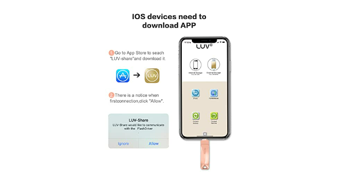 ♕Multi-port and Supports More Devices : To use the photo stick on Phone/Pad, you need to download \'\'LUV-Share\'\' app; Android needs to turn on OTG function(No need to download APP). Multi-interface and excellent heat dissipation design ensure excellent performance and high transmission speed. You can transfer data between various devices and easily complete data sharing.