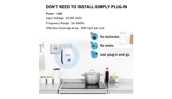 Smarter Protection: use intelligent frequency conversion technology and the heat dissipation system can continuously release different frequencies ultrasonic waves 24 hours a day. Ensure that pests do not develop immunity and adaptability, effectively repelling fleas, rodents, roaches, mice, insects, mosquitoes, ants, rats, bed bugs, and more.