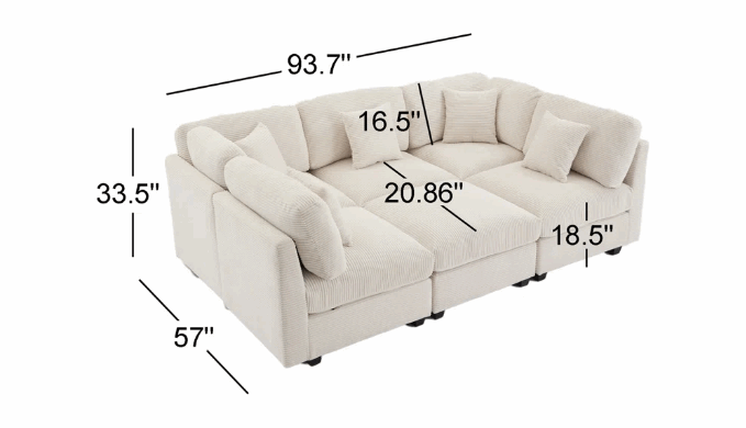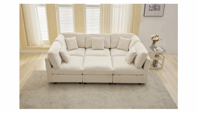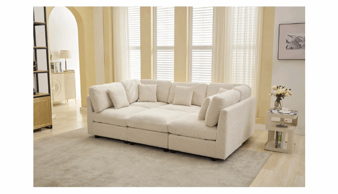 This 6-piece modular corduroy sleeper sofa bed perfectly combines modern design with versatility. Made from high-quality corduroy fabric, it offers a smooth and soft texture with an elegant touch, instantly elevating your home atmosphere and perfect fit for any living space. The modular design allows you to easily adjust the arrangement, making it ideal for daily lounging, family gatherings, or entertaining guests, and providing extra sleeping space as needed, this sofa provides an exceptional comfort experience. The sleeper function offers a comfortable solution for overnight guests or quick naps. Whether for large spaces or compact homes, this modular sofa bed adds both style and convenience to your living space, adding convenience and warmth to your home.