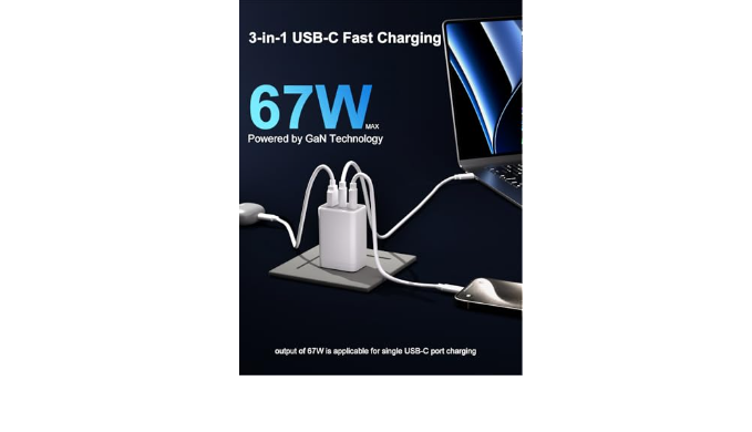 【3-in-1 Charging Solution for Fast Charging】Tired of using multiple chargers? Our 67W USB C charger block fast charging solution features two USB-C ports and one USB port, allowing you to charge three devices simultaneously with fast charging technology. Say goodbye to clutter and power up your MacBook, cell phone, and other devices with one compact wall charger. Perfect for both home and office use, this USB C charger block helps you stay organized while powering all your devices with ease.
