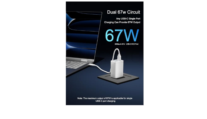 【Incredibly Fast & Powerful Charging】Experience lightning-fast charging for your iPhone, iPad, and laptop with the 67W USB-C Charger. Charge your MacBook Air M2 up to 51% in just 30 minutes—get back to work or play in no time, with more power and less downtime!(When the USB-C port of this 67W USB C Charger is used alone, the maximum power can reach 67W. When multiple ports are used at the same time, the power will be intelligently distributed to ensure that you get the best charging experience)
