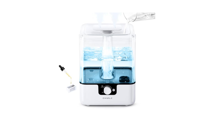 Perfect Baby Humidifiers for Bedroom : The cool mist humidifier has a knob to adjust the mist output and can run at a minimum of 26dB at the lowest setting, so enjoy a peaceful night’s rest. Soft blue night lights can also be turned on or off. CHIVALZ cool mist humidifier is an ideal choice for bedrooms, large rooms, baby nursery, offices, indoor plant humidifiers, and more