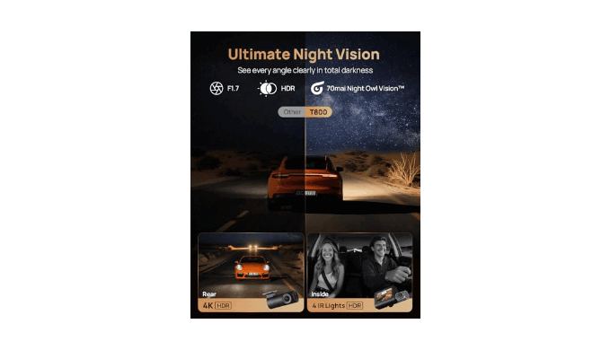 【70mai Night Owl Vision for Unmatched Night Vision】70mai’s exclusive night vision cuts headlight glare and boosts clarity in urban nights. Four 940nm infrared cabin cameras auto-activates in darkness, even capturing backseat details. Ideal for night driving and ride-share safety.