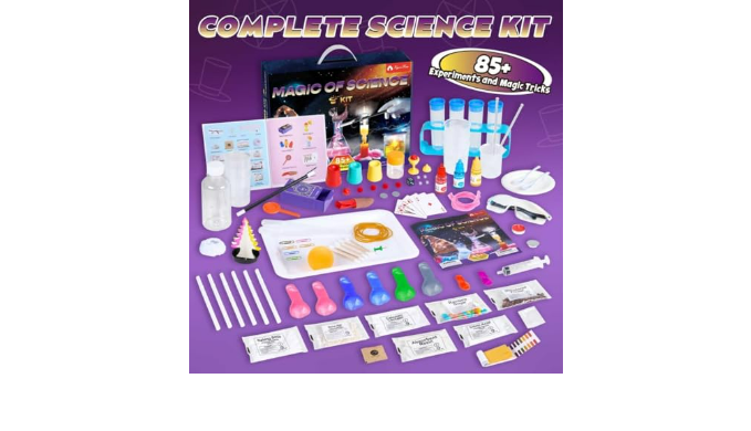 Rich Scientific Experiments and Magic Content: Offering over 85 scientific experiments and magic performances, the scientific experiments cover various fields such as chemistry, physics, and earth sciences. The experimental content is unique and creative, providing children with a rich scientific exploration experience and cultivating their interest in science. Magic performances add fun to the toy, and successfully performing a magic trick in front of family and friends helps boost a child\\\'s confidence