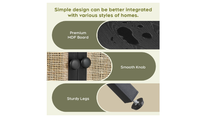 Clean rustic look with natural rattan and wood grain finish