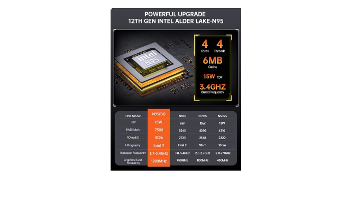 ✔【12th Intel N95 CPU】: Acemagic Mini PC is powered by Alder Lake-N N95 Processor(4Cores 4Threads, 6M cache, up to 3.4GHz). Compared with N100 and N5105, the overall performance of mini pc gaming N95 is higher up to 48%. The small pc S1 is a perfect companion for light gaming, home theater, office tasks etc.