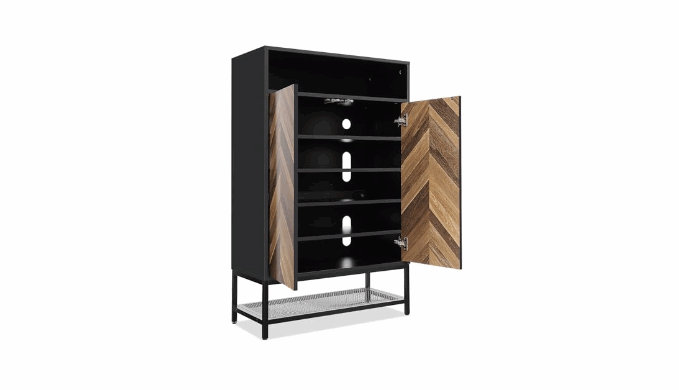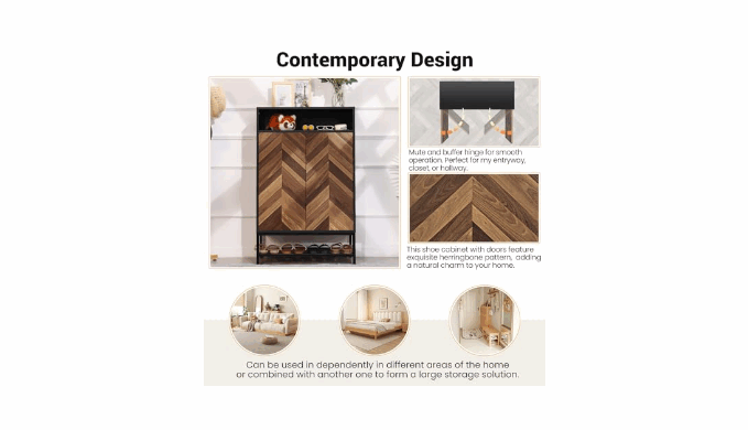 MODERN & ELEGANT DESIGN - Featuring a beautiful wood grain finish, this shoe cabinet with doors brings mid-century modern charm to any room. It features magnetic doors for convenient and effortless use. The elegant design enhances the look of your entryway, hallway, bedroom, or living room, creating a warm and welcoming atmosphere.