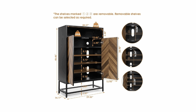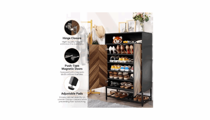 STURDY AND DURABLE SHOE CABINET - This Wood Shoe Cabinet is Made of Particle Board and Metal Legs, Sturdy and Durable for Long Time Daily Use, The Shoe Cabinet\'s Surface is Sleek and Impermeable, Very Easy to Clean and Maintain, The Thicken Board Make Sure Reliable Support and Security, This Free Standing Shoe Cabinet is a Great Storage Solution for Entryway, Closet, Dormitory, Garage, Apartment, Hallway.