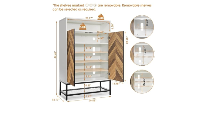 SUITABLE FOR ANY ROOM SPACE - Overall Sizes: 29.52\" W x 14.17\" D x 46.45\" H, This Narrow Shoe Storage Cabinet Can Fit Into Small Space of Foyers and Entryway Easily, With Simple Design Plus Practical Function, This Storage Cabinet Can Be Use as a Shoe Rack, Or Kitchen Storage Cabinet, 2 Doors Storage Cabinet Provide Plenty of Hidden Storage Space to Place Your Items and Make Your Home Clutter-Free.