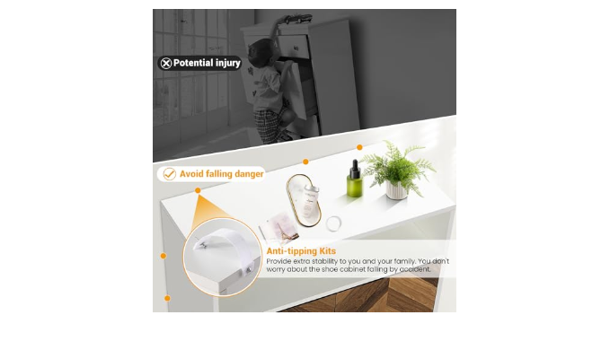 EASY TO ASSEMBLE & CLEAN - This freestanding shoe cabinet is simple to assemble, with all parts numbered and accompanied by straightforward instructions and all necessary hardware. Please install our anti-tip kit for added stability and peace of mind. The smooth surfaces make cleaning a breeze, just wipe it down with a damp cloth to keep it looking pristine.