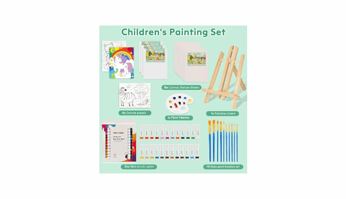 Premium, Child-Safe Materials: Crafted from high-quality, non-toxic materials, this kids\' painting set is specifically designed with young artists in mind. Each component is rigorously tested to ensure it meets safety standards, giving parents peace of mind. With its vibrant colors and easy-to-use tools, it offers children a safe, engaging, and creative way to explore painting, encouraging artistic expression without compromising on safety.