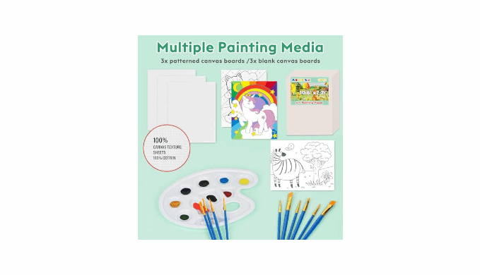 Perfect for Little Picassos: With both patterned and blank canvases, children can paint freely or follow fun designs. The set is ideal for nurturing creativity in kids and providing them with the tools to express their imagination.
