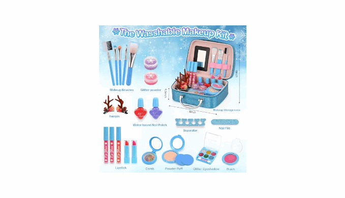 Safe, Washable & Gentle for Kids\' Skin - All makeup is made with non-toxic, water-soluble materials that are gentle on young skin and easy to wash off with soap and water.Toys for Kids Ideal for children ages 5 to 12, this girls makeup kit provides safe pretend play for toddlers and young girls maquillaje para niñas. Let your little one enjoy fun makeup experiences without mess or worry!