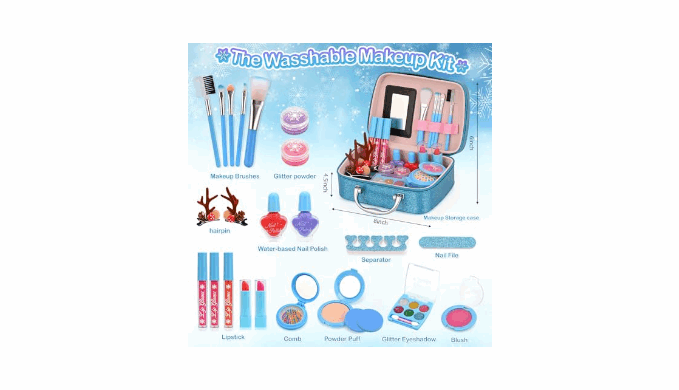 Safe, Washable & Gentle for Kids\' Skin - All makeup is made with non-toxic, water-soluble materials that are gentle on young skin and easy to wash off with soap and water.Toys for Kids Ideal for children ages 5 to 12, this girls makeup kit provides safe pretend play for toddlers and young girls maquillaje para niñas. Let your little one enjoy fun makeup experiences without mess or worry!