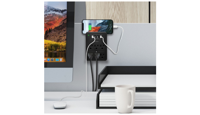 The Aduro Surge Multi-Charging Station is the perfect solution for keeping all your devices powered up and organized. With 6 outlets and 4 USB ports, you can charge up to 10 devices simultaneously. The SmartCharge feature detects the input current of connected devices to maximize compatibility and charging speed. The 4.2A total USB output ensures fast charging for all your devices. Plus, the flame retardant material ABS and heat reduction technology keep your devices safe and protected.