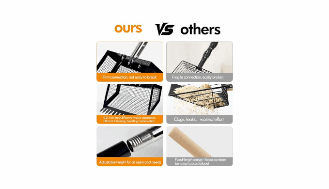 【VERSATILE FOR MULTIPLE USES】More than just a chicken coop scoop, this sifting shovel excels at beach cleaning, cat litter sifting, and barn maintenance. The ultimate chicken poop scooper for sand, soil, and various bedding materials. An essential chicken coop accessory.