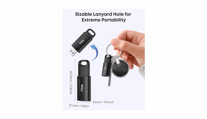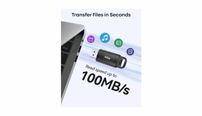 128GB USB Drive: Coming in large 128GB storage capacity, this flash drive allows you to store large files, high-resolution photos, videos, music, and more