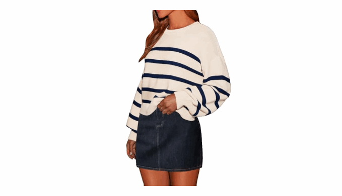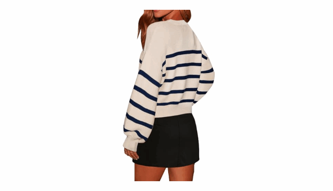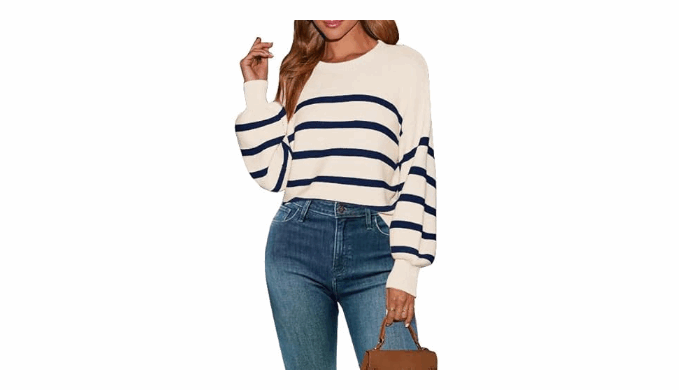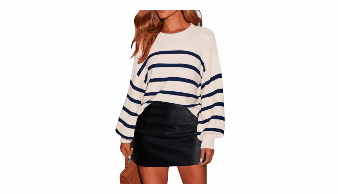 This WOMENS CREW NECK SWEATSHIRT is not just a SWEATER; it\'s a statement. With its STRIPED pattern and FLEECE SWEATER WOMENS texture, it stands out as a must-have KNITTED SWEATERS FOR WOMEN for any WOMAN seeking a blend of DRESSY and casual