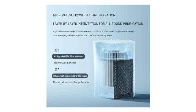 Efficient Particle Filtration: air purifier uses an H13 HEPA filter. Simply turn it on and maintain a clean and peaceful environment and give families health.