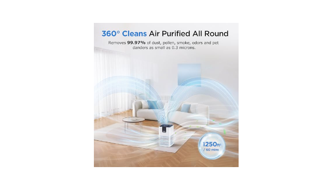 High-Efficient Filtration for Home: Breathe deeply and experience the tranquility of purified air with M05 air purifier\'s high-efficiency filtration system. Covering up to 1250 ft², our room air purifier rapidly circulates and filters the air, removing dust, smoke, odors, and other harmful particles, Embrace the serenity of a purified environment and breathe easier today!