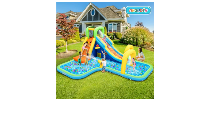 ☀️【Enjoy Outdoor Summer Joy】This vibrant water slide park for kids is not just any inflatable, it\'s a magical kingdom of joy for kids aged up 3; The blow up water park is made from durable 420D and 840D Oxford fabric and is built to withstand the most enthusiastic bouncing sessions. AKEYDIY large waterslides complete with a splashy water slide, pool, climbing wall, arch shower and even a water cannon for added excitement