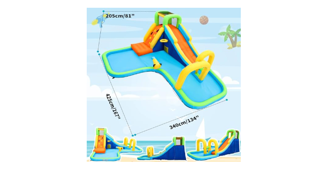 ☀️【Quick Inflation & Easy Carrying】Inflation is speedy & convenient, enables set-up and take down in minutes. Easily folded and stores in matching carrying bag after use. This water park is suitable for outdoor & indoor, no matter on Children\'s Day, Christmas, Birthday, Easter Day and etc, which can accompany kids for many years. WARM TIPS: Please wait for the water slide dry before rolling-up for storage. Recommend for 480W or above air blower, the blower is NOT included