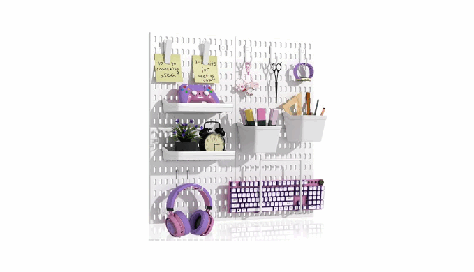 【Multi-scene Use】Our pegboard wall combination kit is great for wall organizing, craft room storage, ornament display, and gaming set up. Adjustable shelves, hooks, and containers accommodate gaming accessories, stationaries and ornaments, ensuring a personalized storage solution