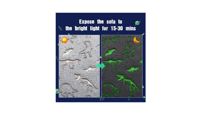 Night Light Design: Customized with cute dinosaur patterns on soft and skin-friendly fabrics, the night light effect can be presented when illuminated by light at night, bringing a dreamy dinosaur park to children.