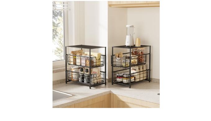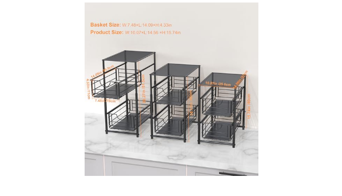 Convenient Cleaning with Gasket: Basket with hollow design that allows for easy cleaning without taking items away. Simply rinse the basket with water, and it will drain away quickly through the basket for added convenience. It’s recommended to let the kitchen cabinet organizer dry completely before placing it into cabinet. Additionally, each basket comes with a gasket to prevent small items from slipping through.