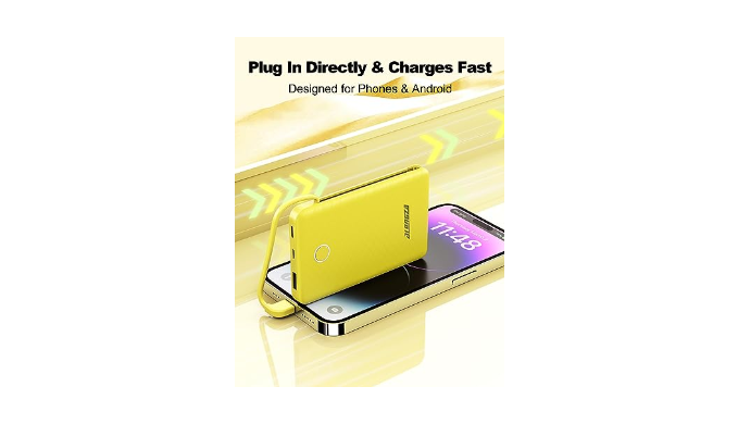 Small Power Bank Built in Cables: Specially designed for all iPhone and Android phones, with the built in cable plug in and charges your phone directly. You don\'t need to bring any charging cords, one Alongza portable charger is enough for your convenience trip