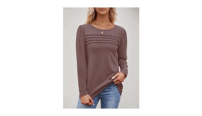 【Trendy 2025 fall fashion design】:Contemporary long sleeve tunic with sophisticated pleated construction captures latest 2025 fall fashion trends perfect for dressy casual styling and seasonal coordination.