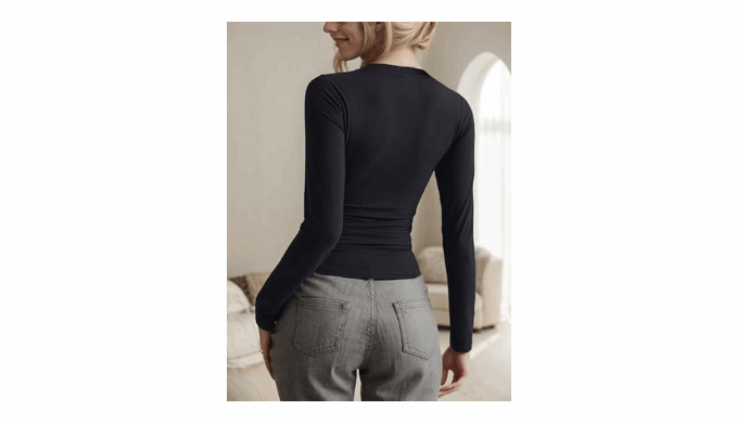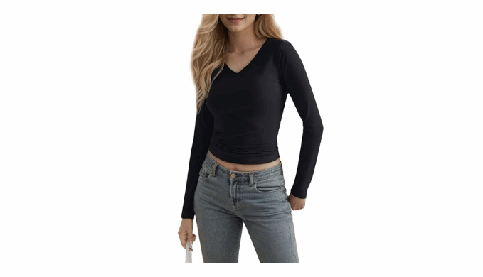 Design: high-stretch fitted style, v neck, long sleeve shirts, tight underscrubs layer, you can wear it regularly or fold it up like a crop top, cute tops, slim fit, casual shirts, y2k style fashion