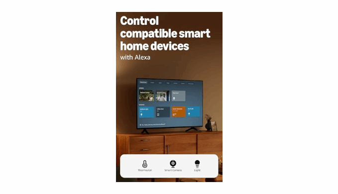 Control your compatible smart home - Ask Alexa to check weather, dim the lights, view live camera feeds, stream music, and more.