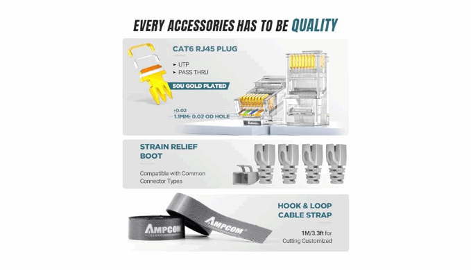 【Decent Set (10 PCS)】EZ Type RJ45 Crimping Tool × 1pc ,Network Cable Teste × 1pc, Punch Down Tool × 1pc, Stripping tool × 2pc, Flush Cutter× 1pc; Hook and Loop Cable Management Strap(Black) × 1pc; 50U Gold Plating CAT6 Pass Through RJ45 Plug × 20pc; RJ45 Cover Boot × 20pc; Replacable Extra Blade × 2pc; Mini Screw Driver × 1pc; Waterproof, Chemincal Resistant Bag × 1pc