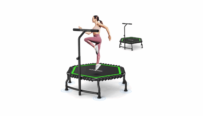Expansive 50-Inch Hexagonal Jumping Surface: Engineered with a large 50-inch hexagonal design, this exercise trampoline and rebounder trampoline provides significantly more usable space. The innovative 6-sided structure optimally distributes impact force for enhanced stability on this fitness trampoline, effectively reducing wobble and the risk of collision on the jumping mat, ensuring a safer experience on your hexagon trampoline.