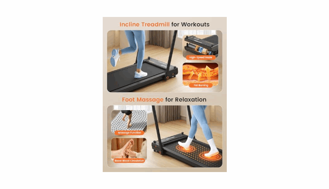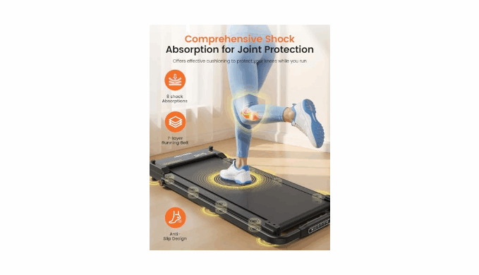 【With 15% Incline & Shock-Absorbing Running Belt】Portable treadmill has a 3-level manually adjustable incline function. The 15% incline design simulates the uphill scene more realistically than other ordinary treadmills, burning about more than 850 calories per hour; at the same time, our treadmill uses a 7-layer cutting-edge shock-absorbing running belt to reduce the impact on your knees and ankles by 60%, truly achieving healthy exercise every day
