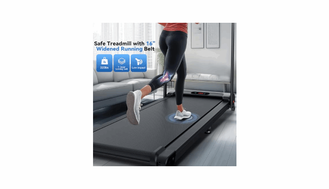 【12% Incline Treadmill & 16\" Extra-Wide Belt】Portable treadmill has a 2-level manually adjustable incline function. The 12% incline design simulates the uphill scene more realistically than other ordinary treadmills,torching 1.8X more calories than flat pad per hour; at the same time, our treadmill with incline uses a 16\" widened running belt to let you have more running space to enjoy your fitness time in comfort