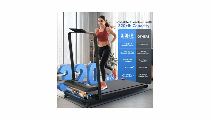 【Superior Home Fitness Machine: Built for Quiet & Strength】This foldable walking treadmill redefines home fitness: a 3.0HP brushless motor (quieter than rivals) powers speeds from 0.6-4.0MPH, accommodating walkers, joggers, and cardio enthusiasts. Its industrial-grade 320LBS capacity and oversized LED screen make it outperforms basic models;this compact treadmill is the all-in-one solution for efficient, high-performance workouts at home