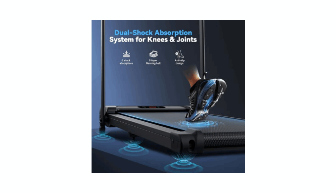 【Pro-Level Joint Safeguard System】 Engineered with 6 high-performance damping absorbers and a 7-layer advanced shock-absorbing belt, this folding treadmill reduces impact on knees and ankles by 60%. Rigorous testing proves its durability,user-centric design ensure every step feels secure—because safety should never be an afterthought
