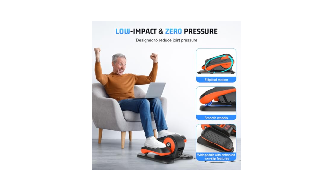 Compact and Portable with Fully Assembled: This electric foot pedal exercise machine is designed compact and portable, measuring just 17*15*9IN and weighing only 12LB, making it easy for seniors to move. And this elliptical stepper comes fully assembled and ready to use straight out of the box. Ideal for home, office, or any setting, it allows for convenient, anytime exercise