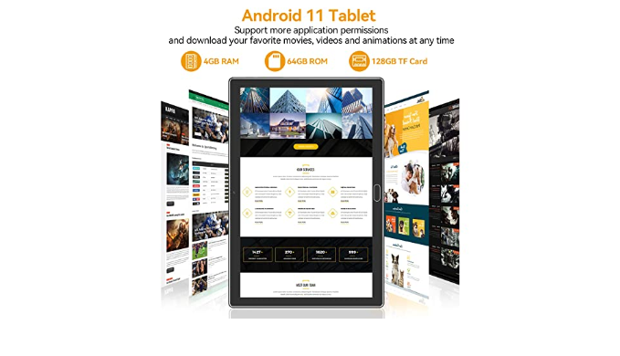 4GB RAM 64GB ROM Eight Core Processor: Android tablet has 4GB RAM and 64GB ROM memory, Which can be expanded to 128 GB through an SD card. Eight-core processors are ideal for running many applications smoothly. You can use this Android tablet to surf the Internet, watch movies, work, take notes, or take classes remotely, without freezing or collapsing.