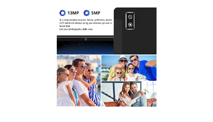 13MP+5MP dual camera 1080 FHD IPS: The rear camera of 10 inch Android tablet is 13MP, Which can leave delicate scenery. The 5MP front camera has powerful beauty focusing function. 1280 * 800 IPS screen and excellent dual speakers provide 1080p FHD quality video image and clearer sound quality. This is perfect for video calls with family at Christmas.