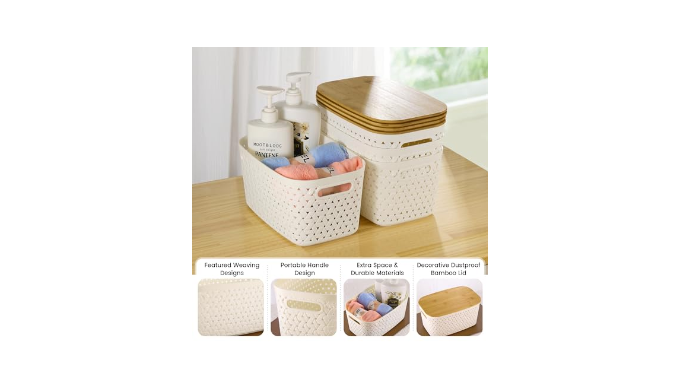 [Aesthetics & Practical Bins] These storage containers with portable handles and stylish bamboo lids, perfect for any decoration in your home, not only neat but also beautiful.These stackable storage bins are versatile and perfect for the living room, bedroom, office, kithen, closets, cubbies, shelves, and much more