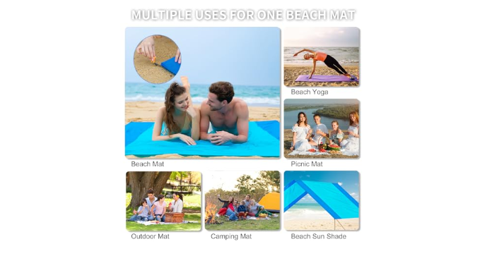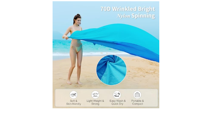 √DURABLE & TEAR RESISTANT√Fabric composition is 100% nylon, the warp and weft raw material is made of 70D, thin, soft, firm and wearable. Our beach blanket allows you to say goodbye to unclean things and enjoy comfort and relaxation, keeping your skin free from the irritation and friction of foreign objects.