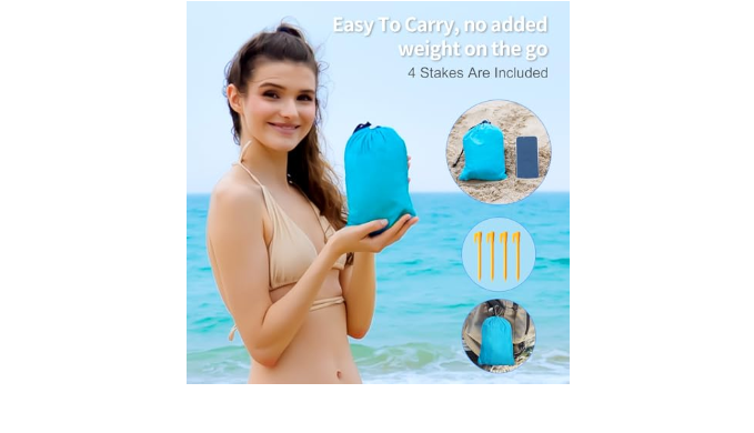 √Free Your Hands√ 4 x plastic stakes keep the beach blanket stays connected to the ground, will not have to be straightened out the blanket over and over again to sit, and it is also an essential windproof tool on windy days. 1 x Carabiner allows you to hook the bag with folded beach mat to your backpack.
